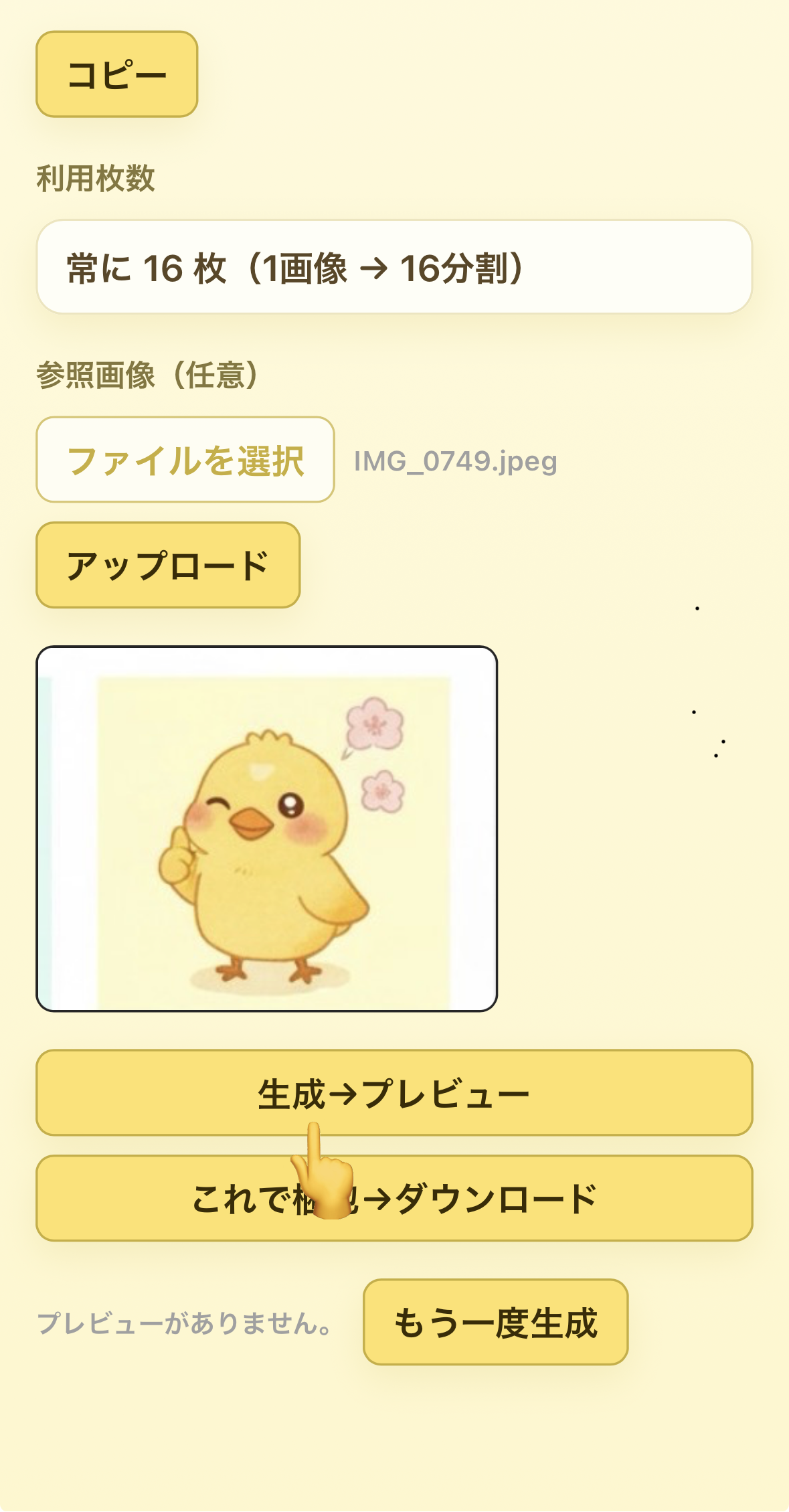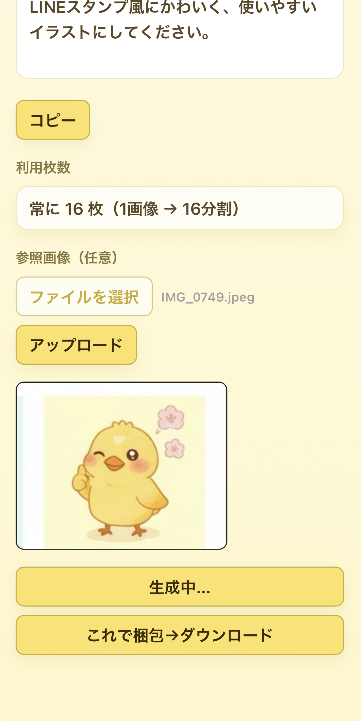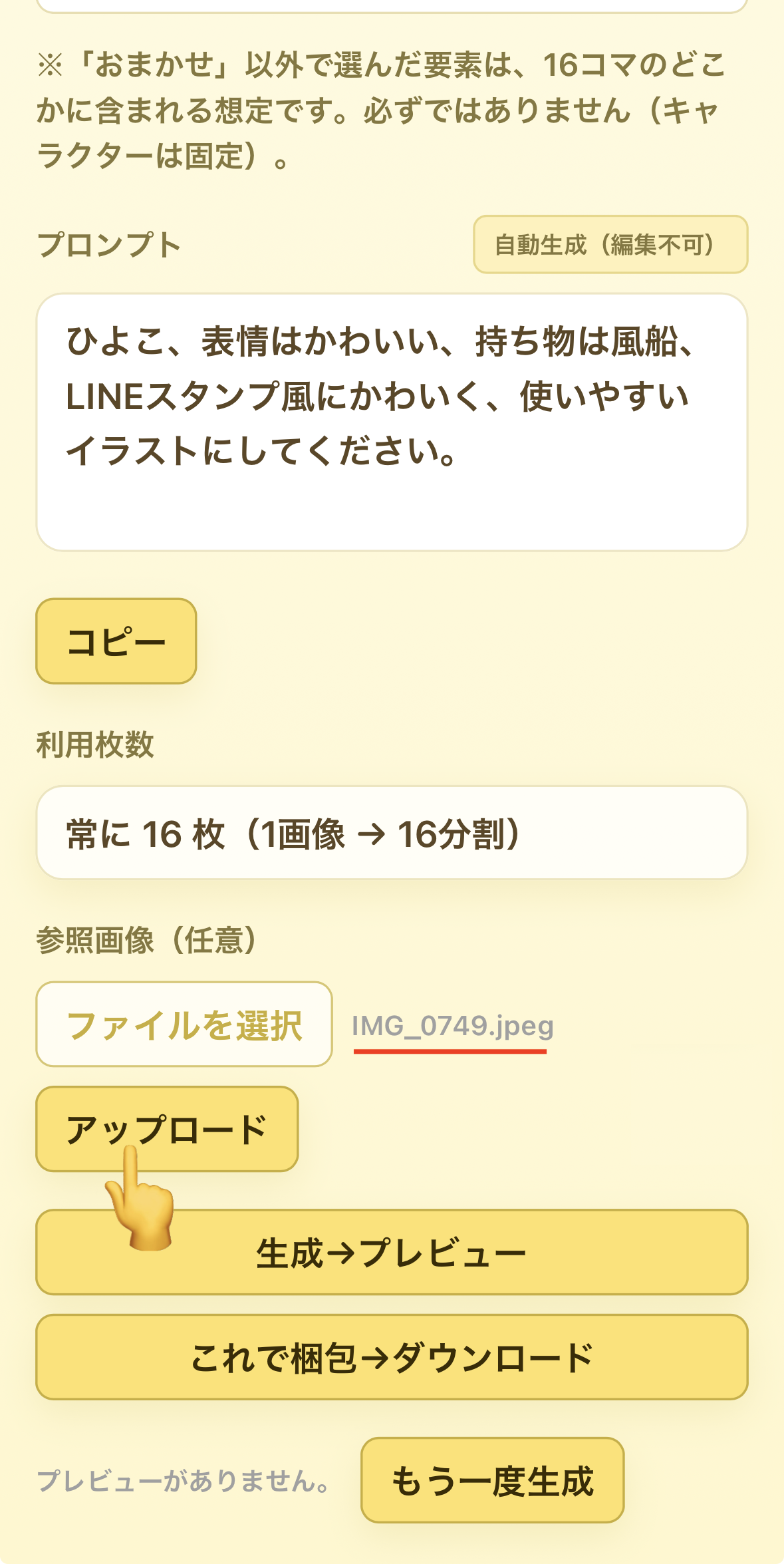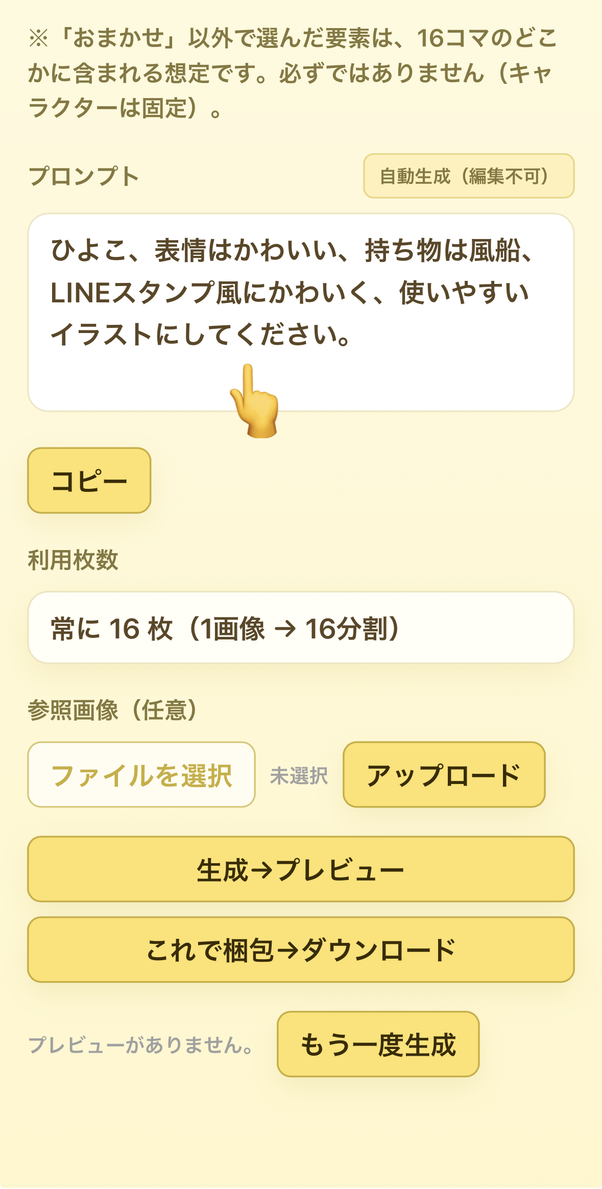選んだ内容から、自動で文章(プロンプト)が作成されます。